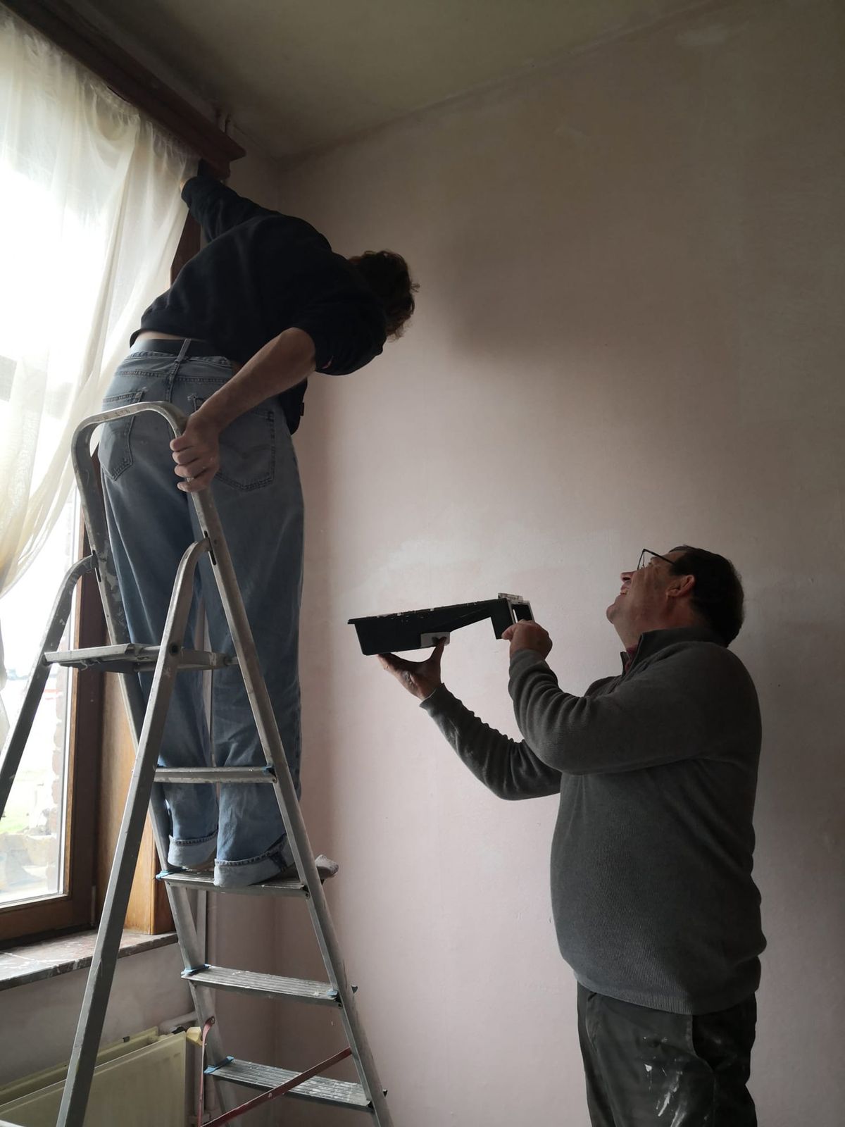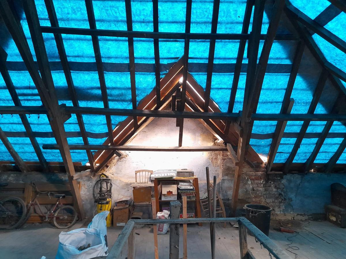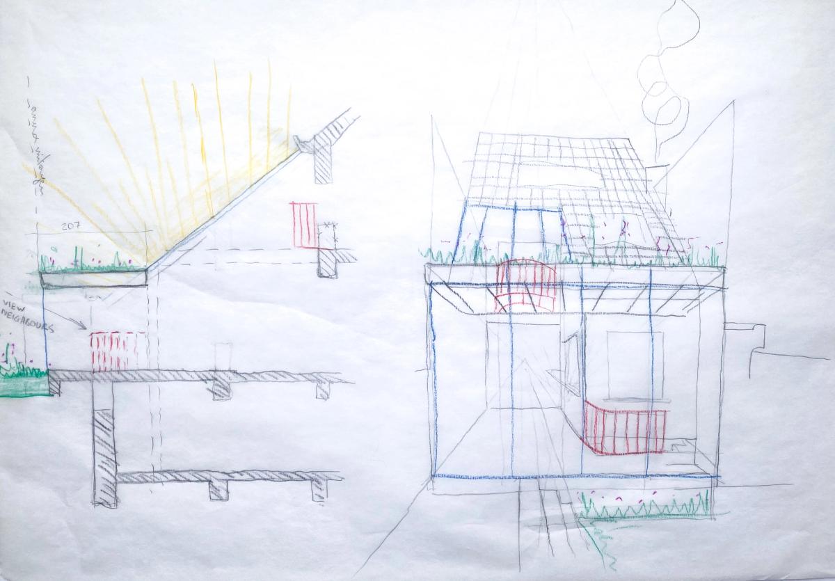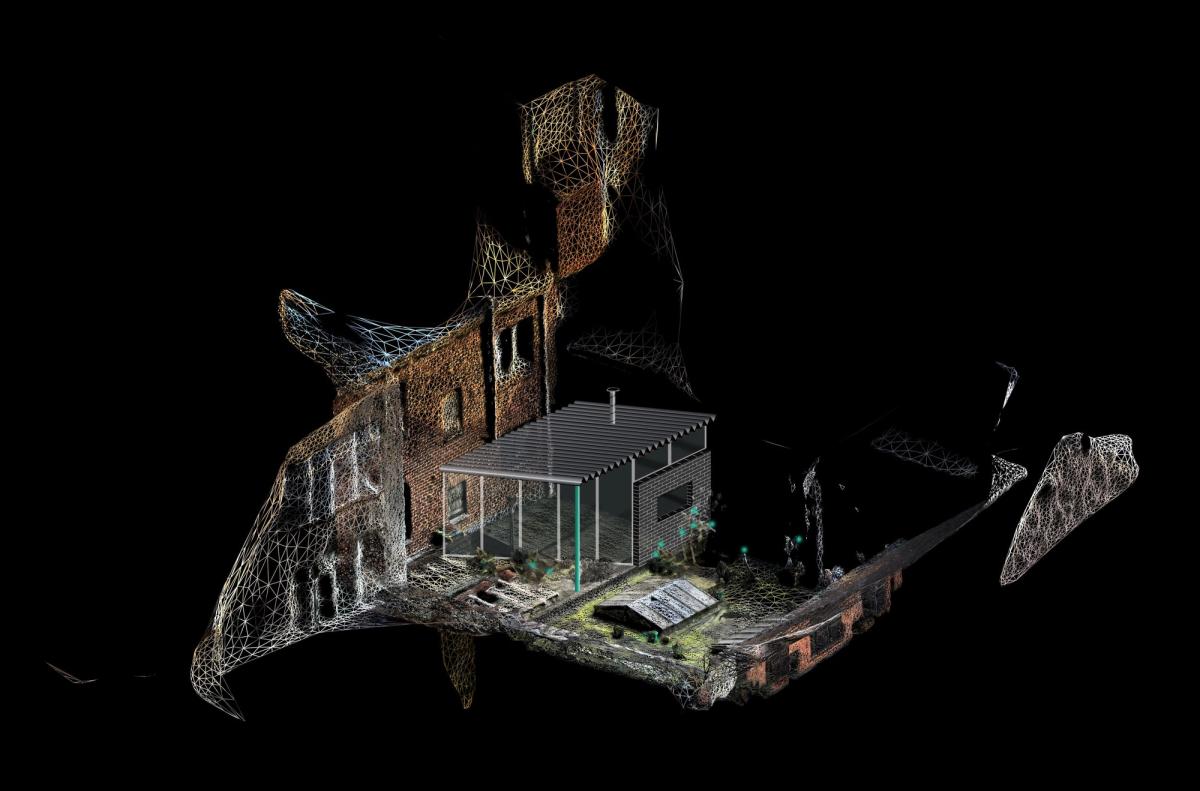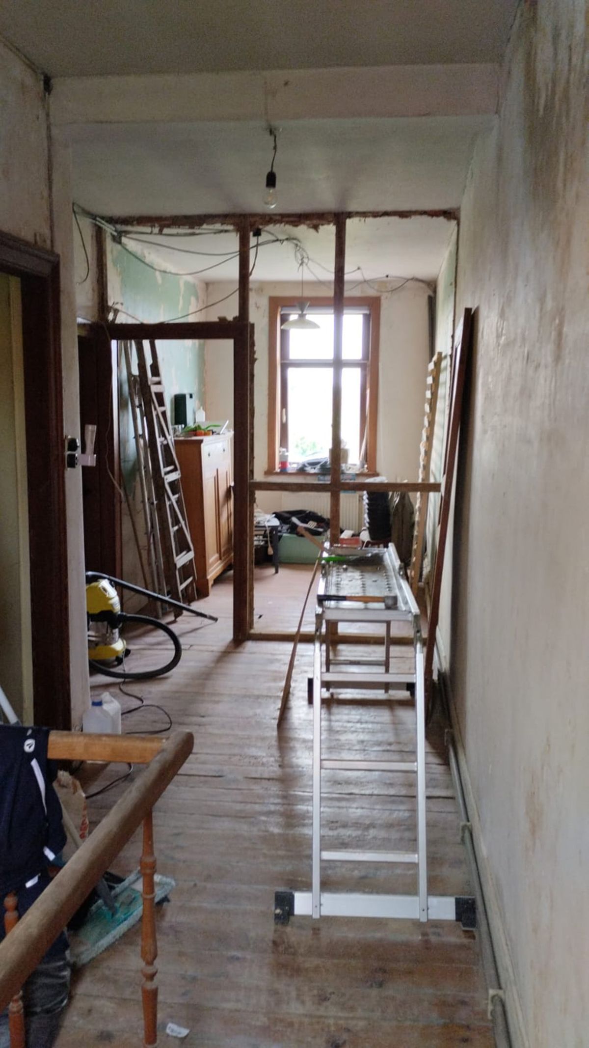 Under this new inside room, a large workshop on the ground floor connects two separate living areas, located in a main building and a single-story rear house, which will soon be self-sufficient in terms of basic utilities.