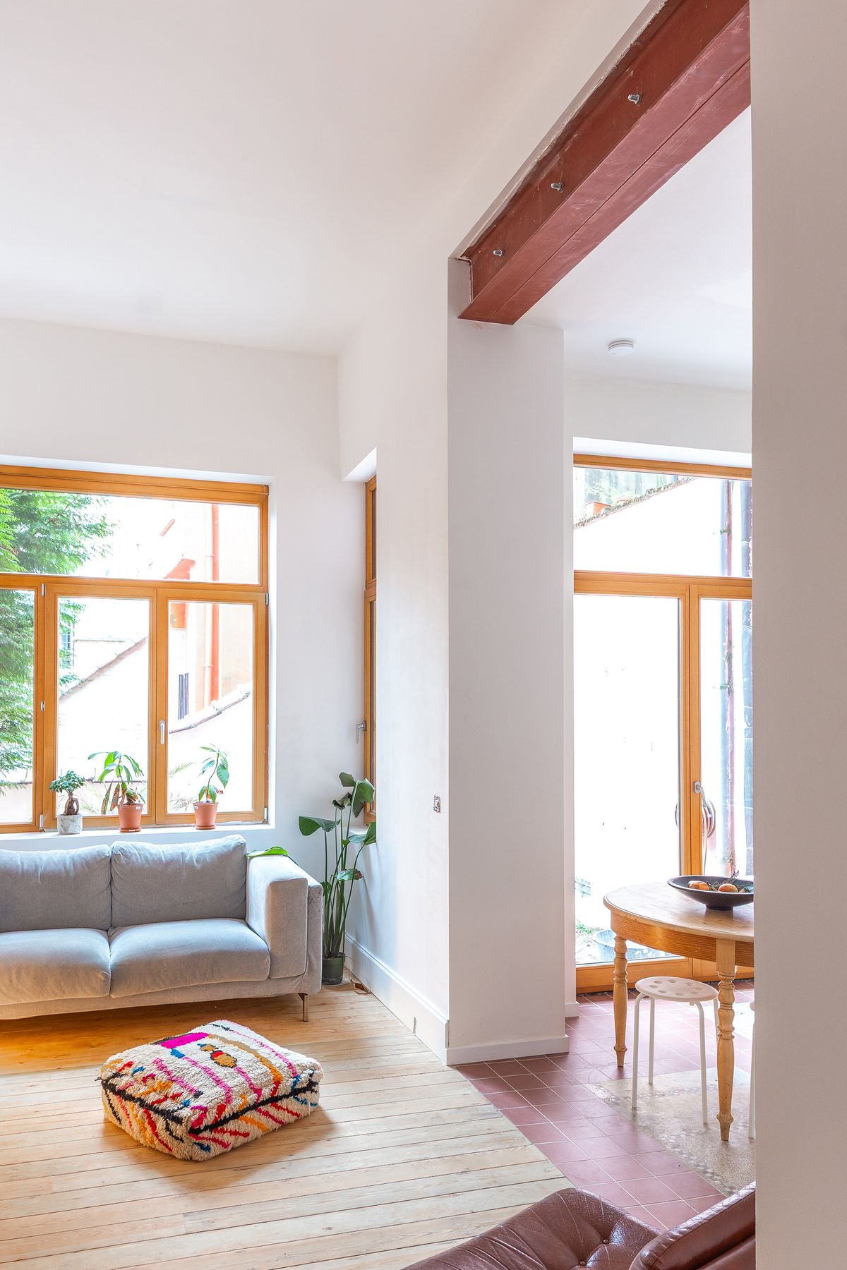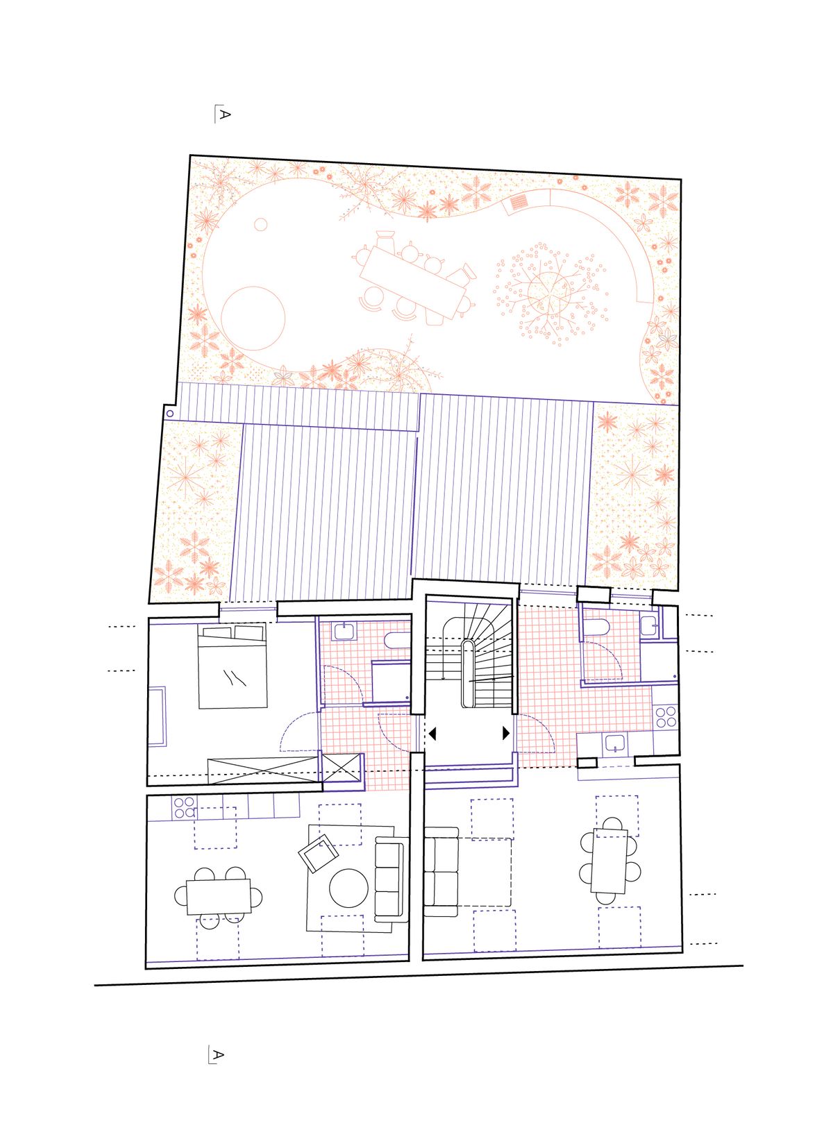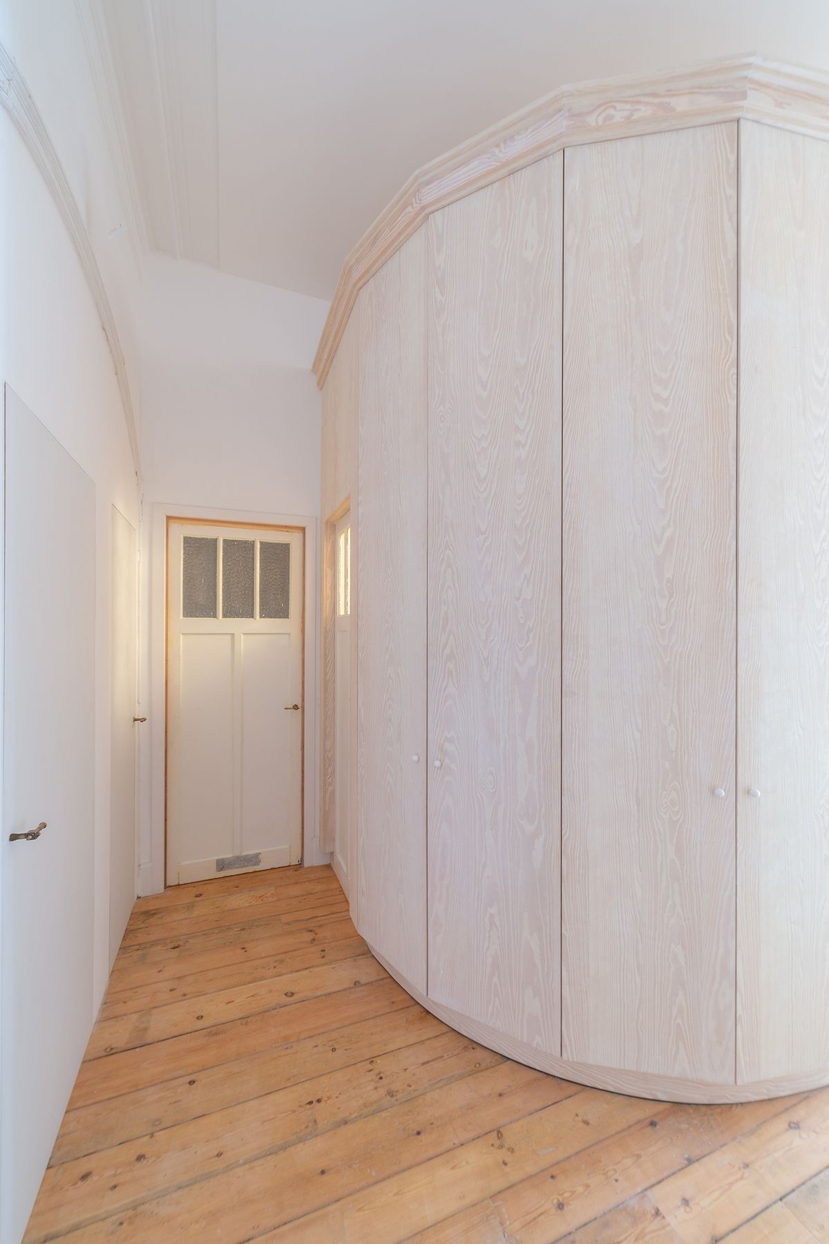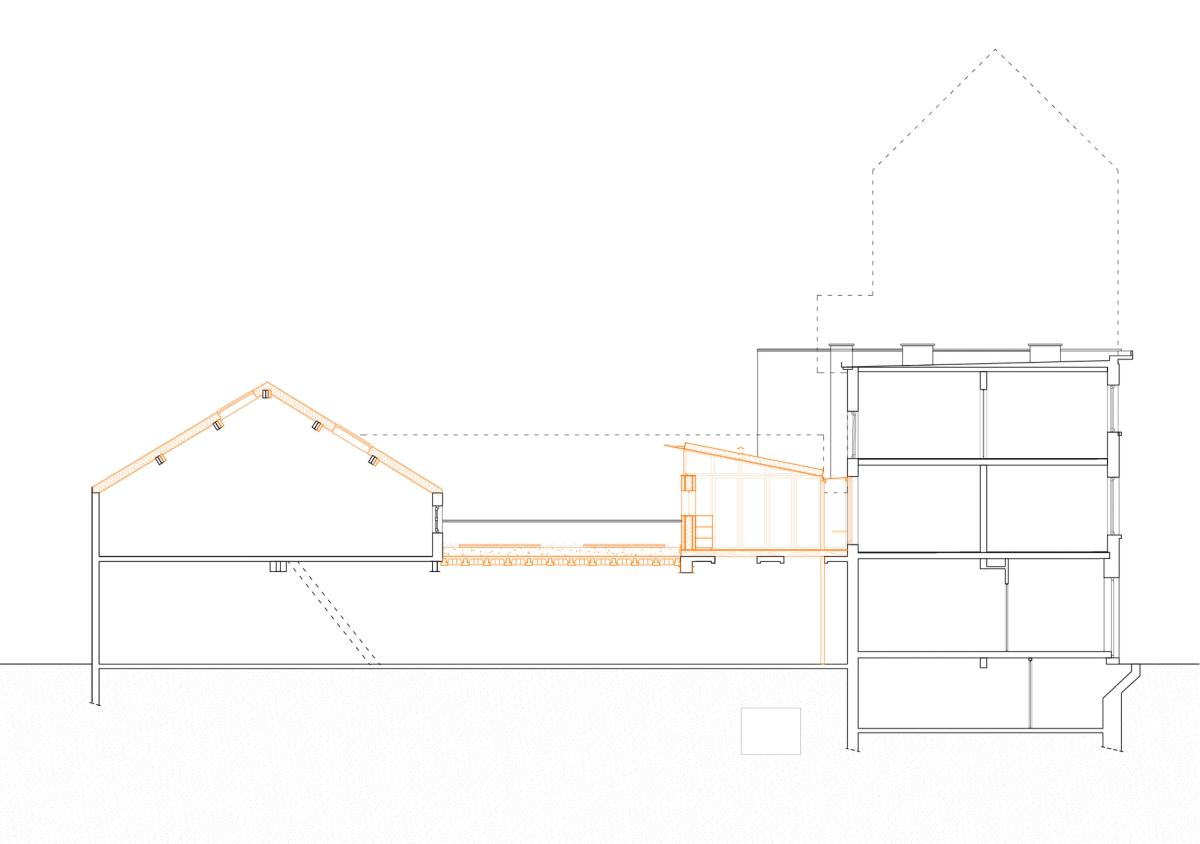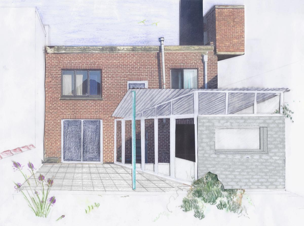 The extension also frees up space in the current –very cramped– kitchen, thereby opening the living space to the outside and creating a two-sided apartment.
