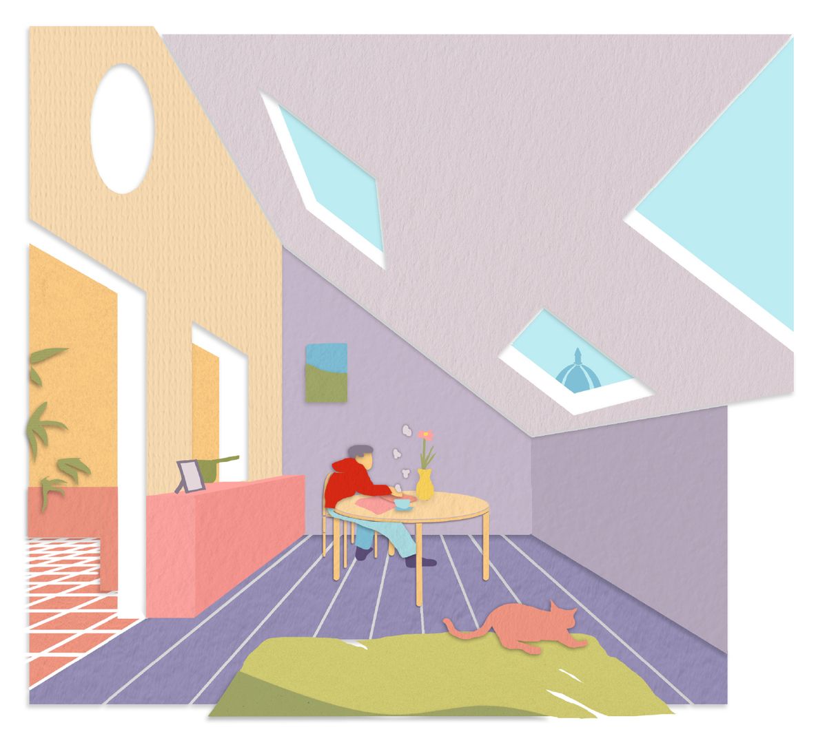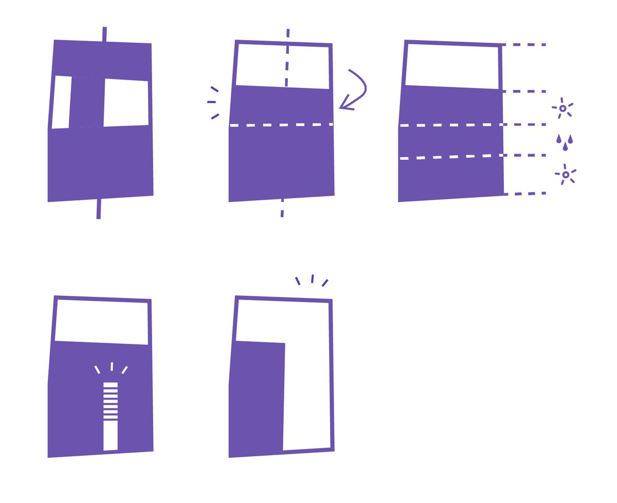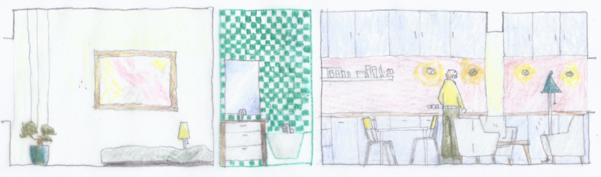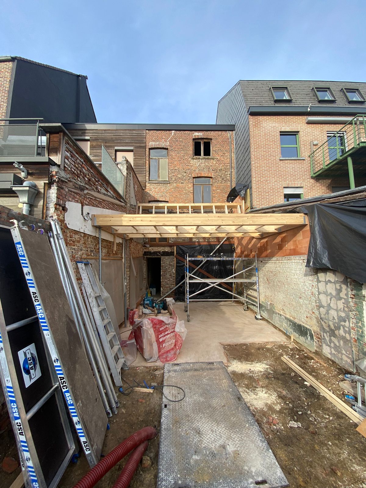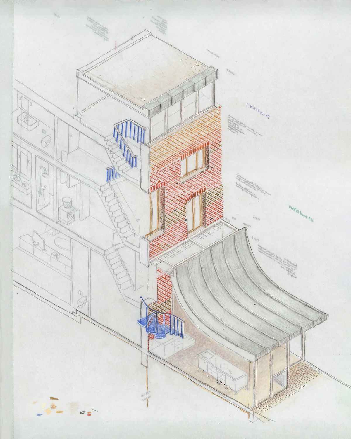 The extension also frees up space in the current –very cramped– kitchen, thereby opening the living space to the outside and creating a two-sided apartment.