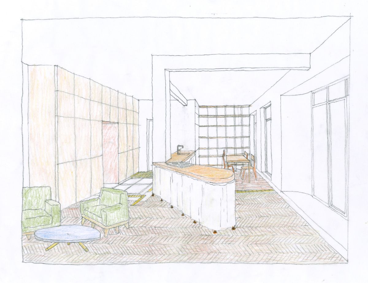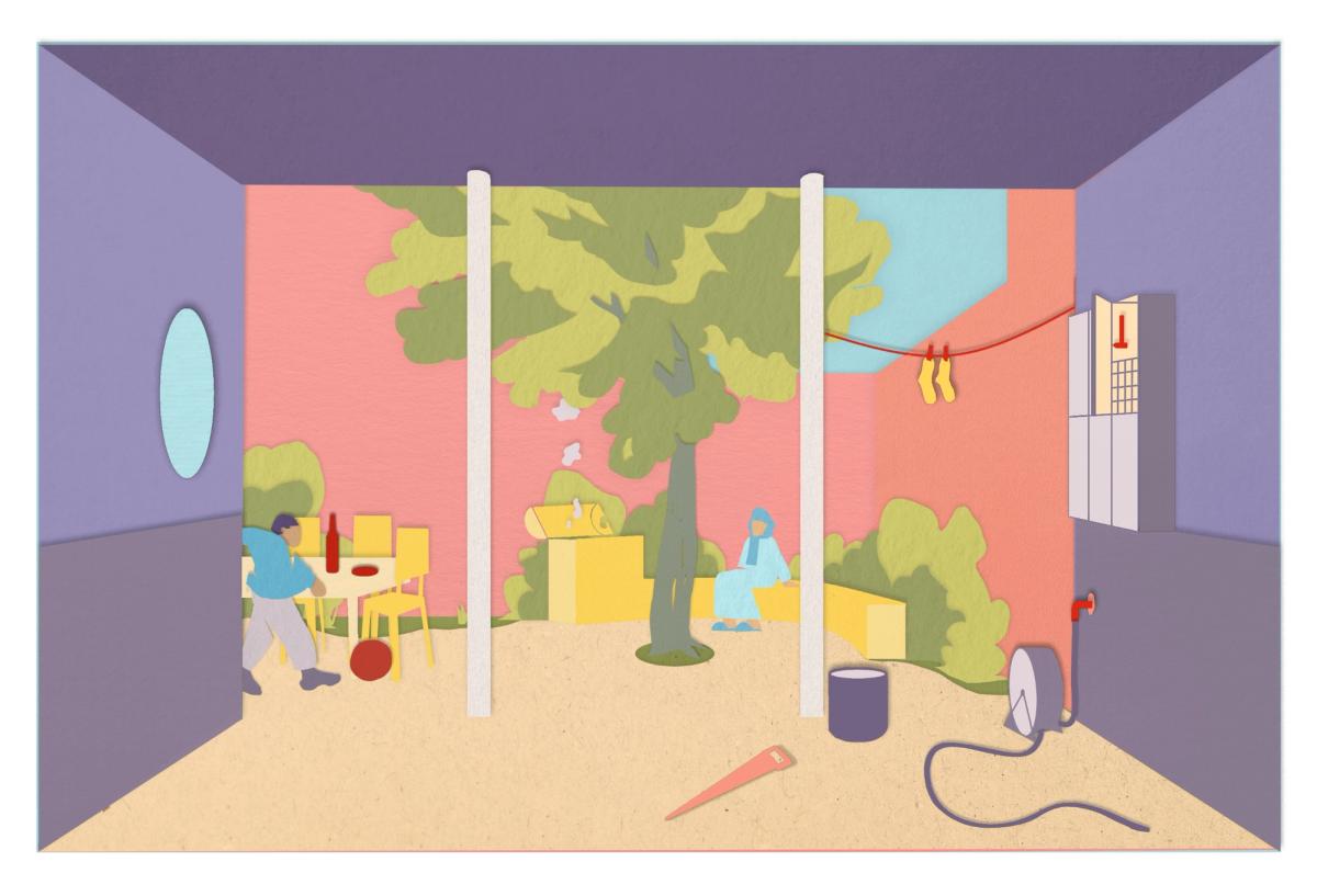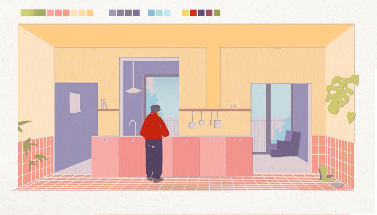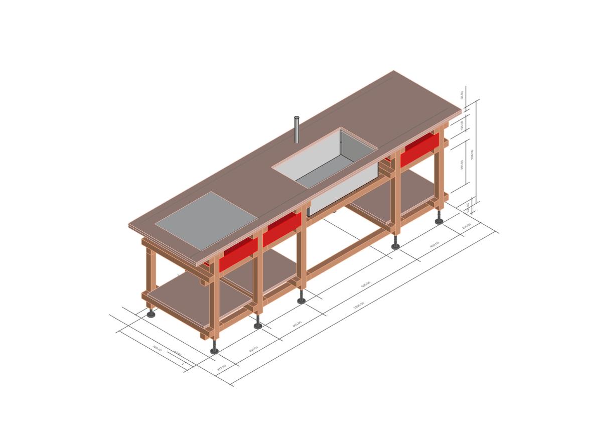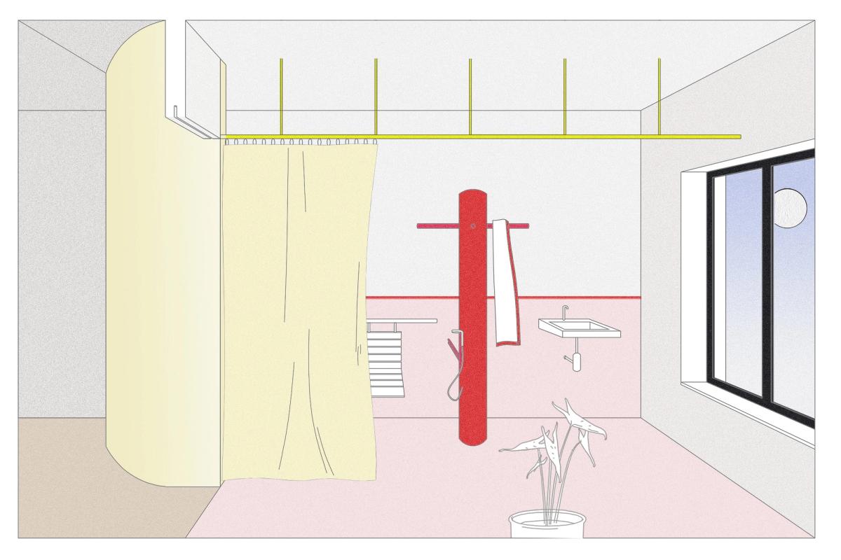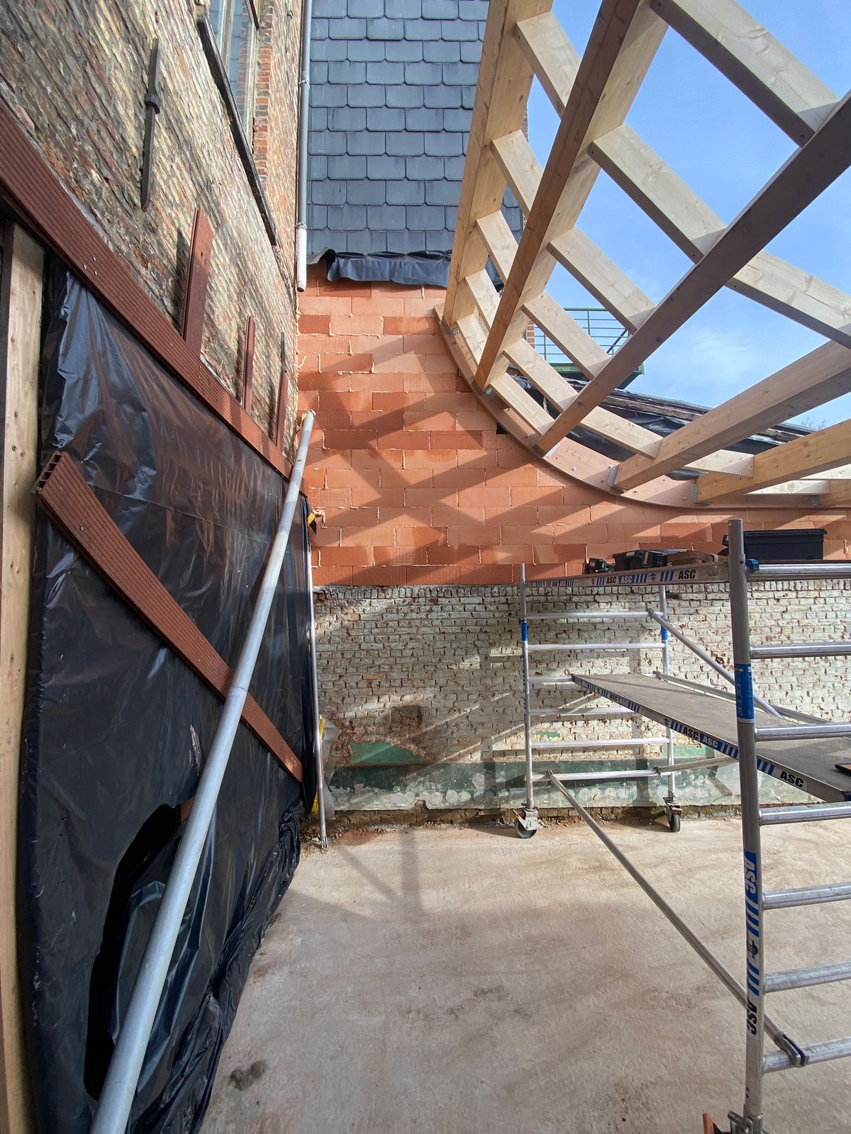 The extension also frees up space in the current –very cramped– kitchen, thereby opening the living space to the outside and creating a two-sided apartment.