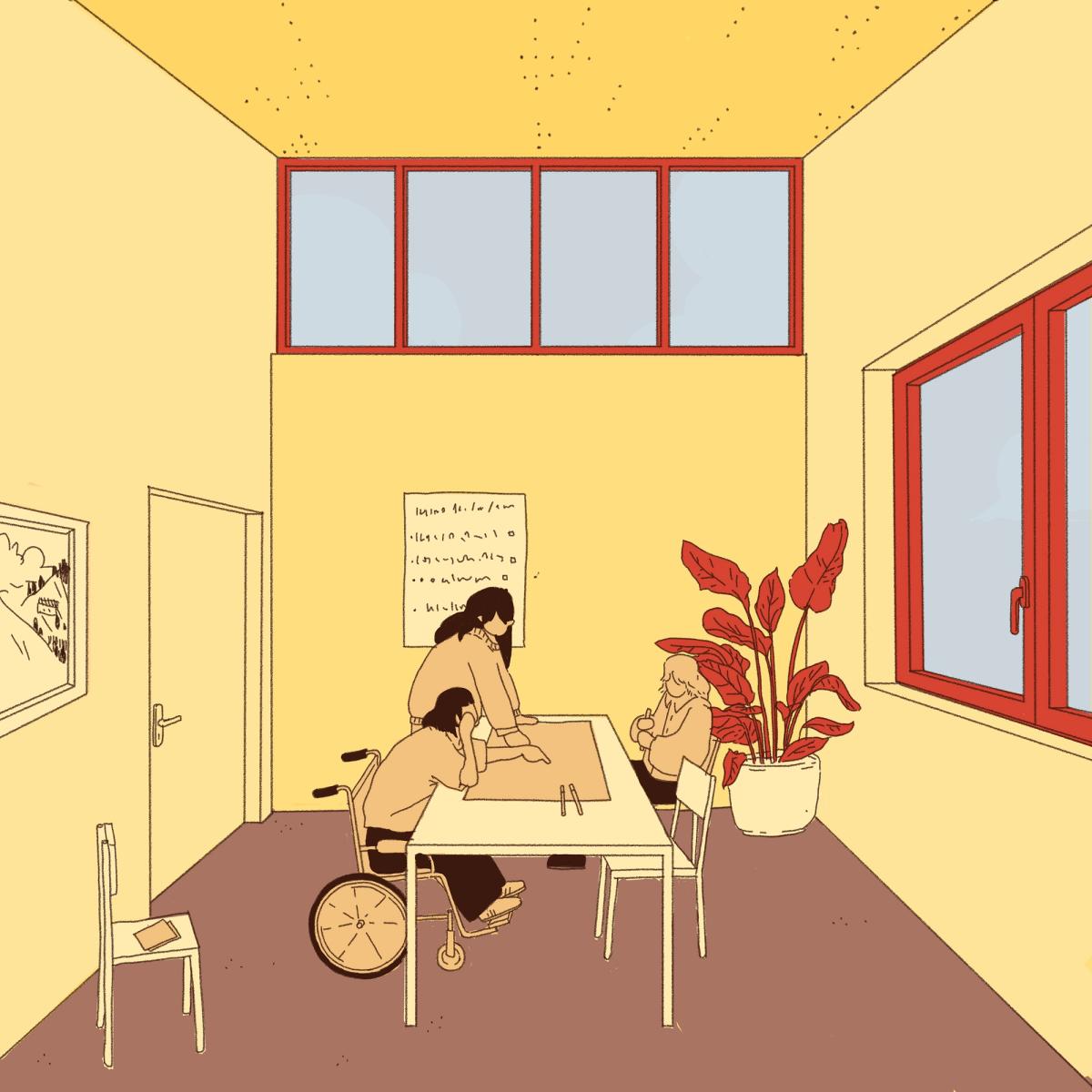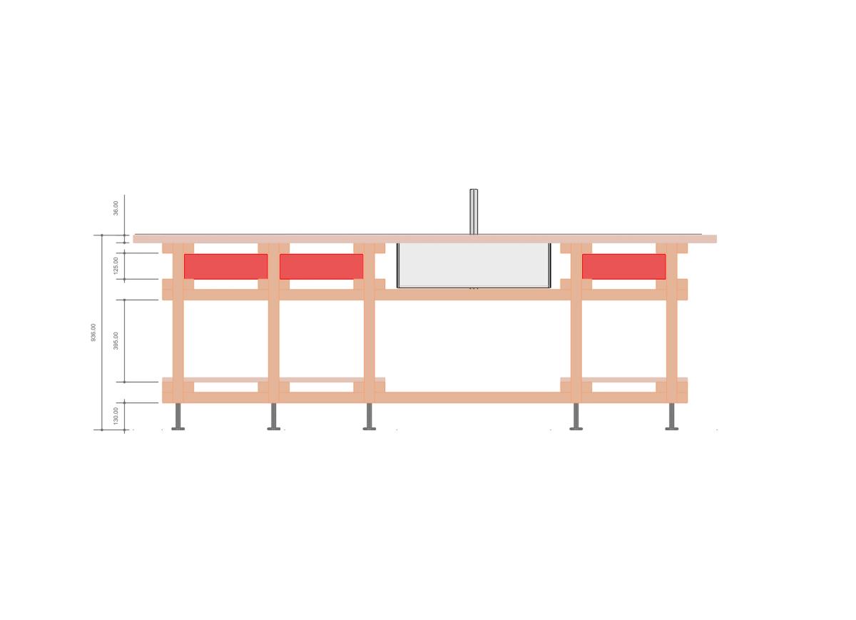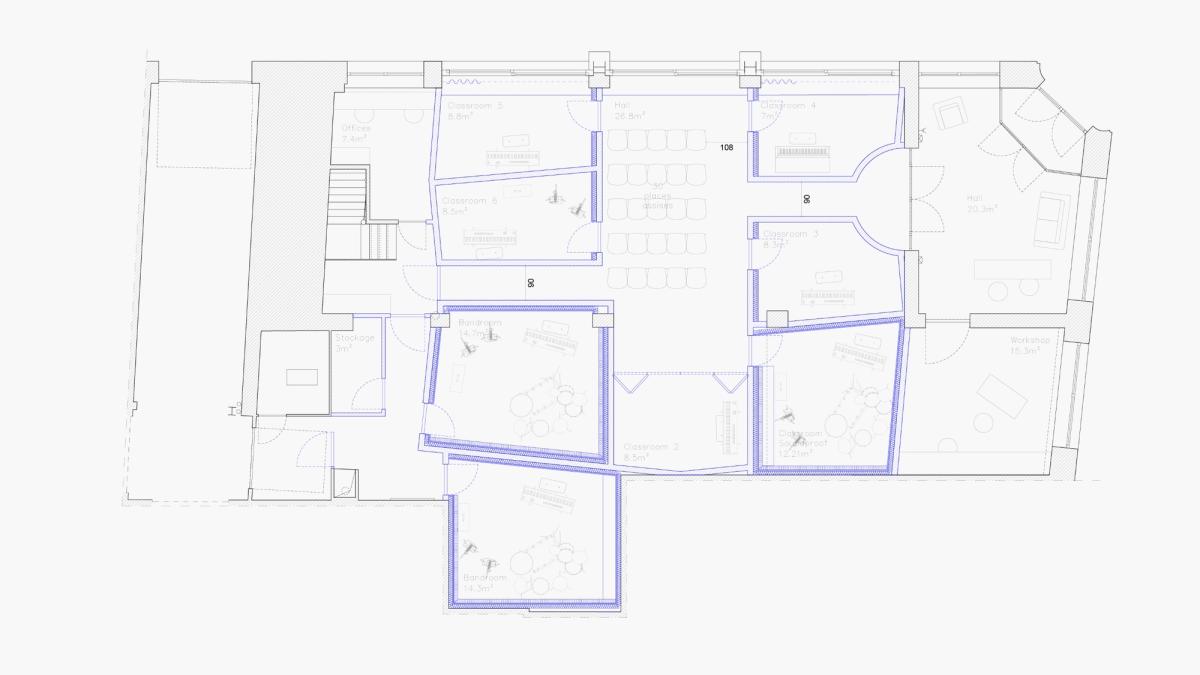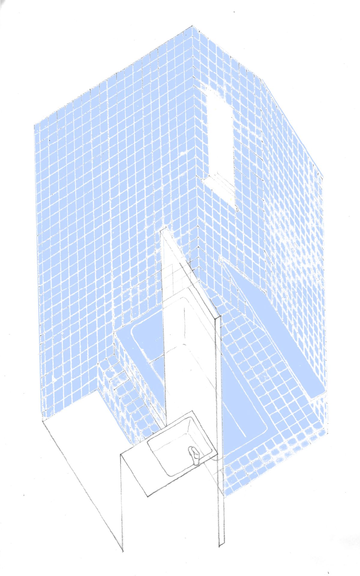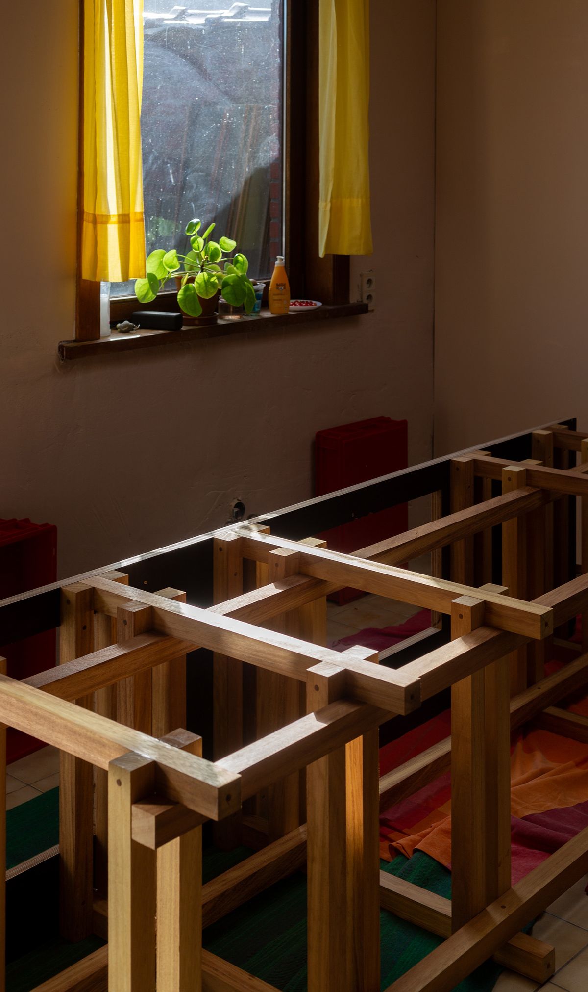 The extension also frees up space in the current –very cramped– kitchen, thereby opening the living space to the outside and creating a two-sided apartment.