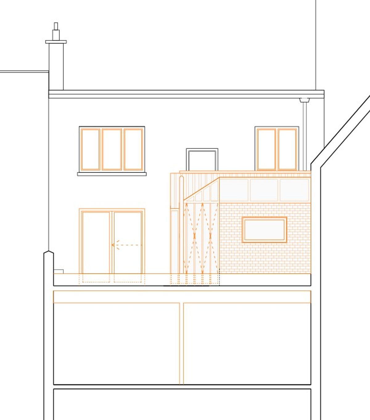 This kitchen on-roof extension offers an opportunity to activate a whole new exterior space in a dense plot that didn’t have any.