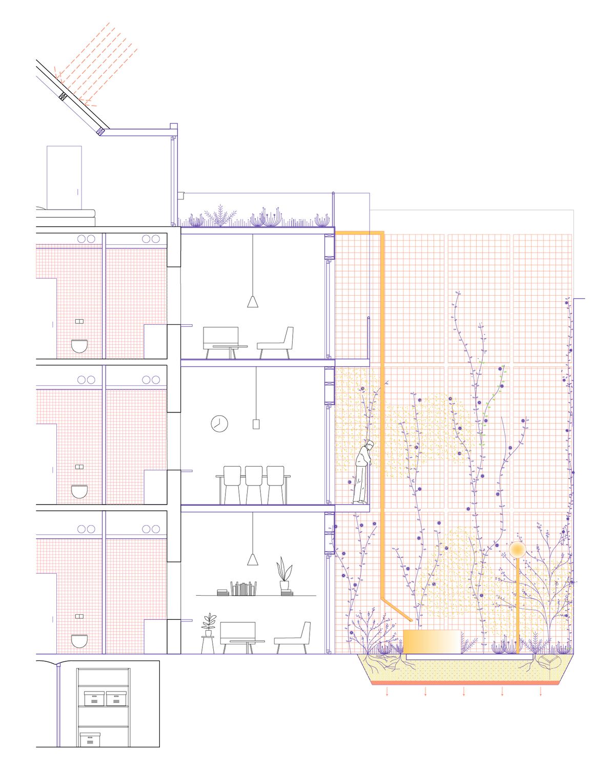 Since Boyd’s goal of growing his own food aligns perfectly with the need to reduce the neighborhood’s impermeability, the rest of the roof will be covered with an intensive green roof system.